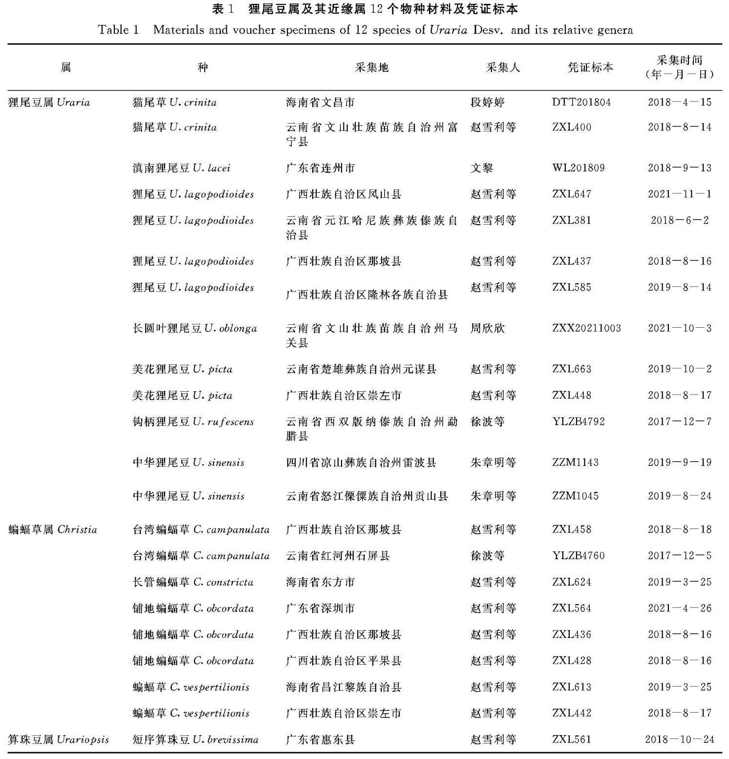摘 要:探究狸尾豆属Uraria Desv.及其近缘属蝙蝠草属Christia Moench、算珠豆属Urariopsis Schindl.叶脉序特征在属间及种间的变异规律和分类学意义,为其作为药用植物资源的鉴定、开发利用及保护提供资料。采用清净法制作标本,观察和描述了该类群12个物种的叶脉序特征,基于叶脉序特征进行主成分分析和聚类分析,并编制分种检索表。(剩余17954字)