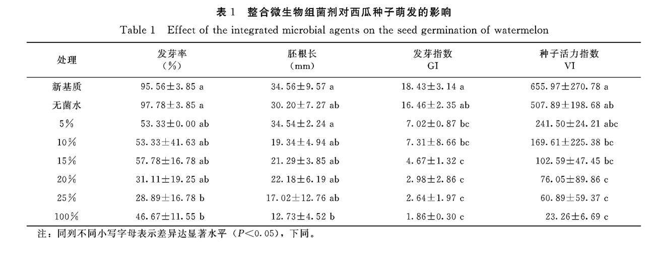 整合微生物组菌剂对西瓜种子萌发和幼苗生长的影响及其对枯萎病的防治效果