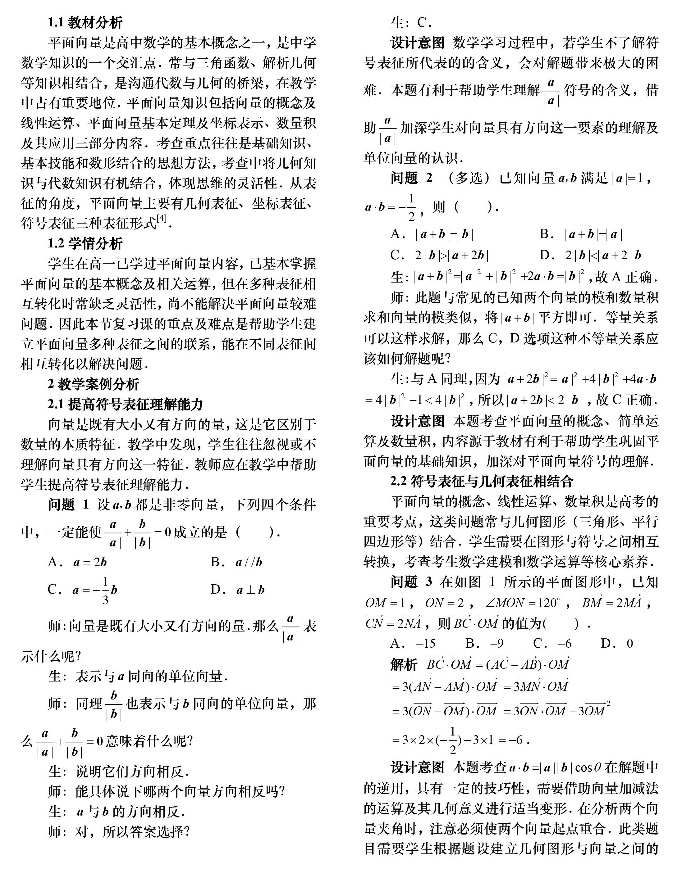 概念表征视角下的高三“平面向量”复习课教学