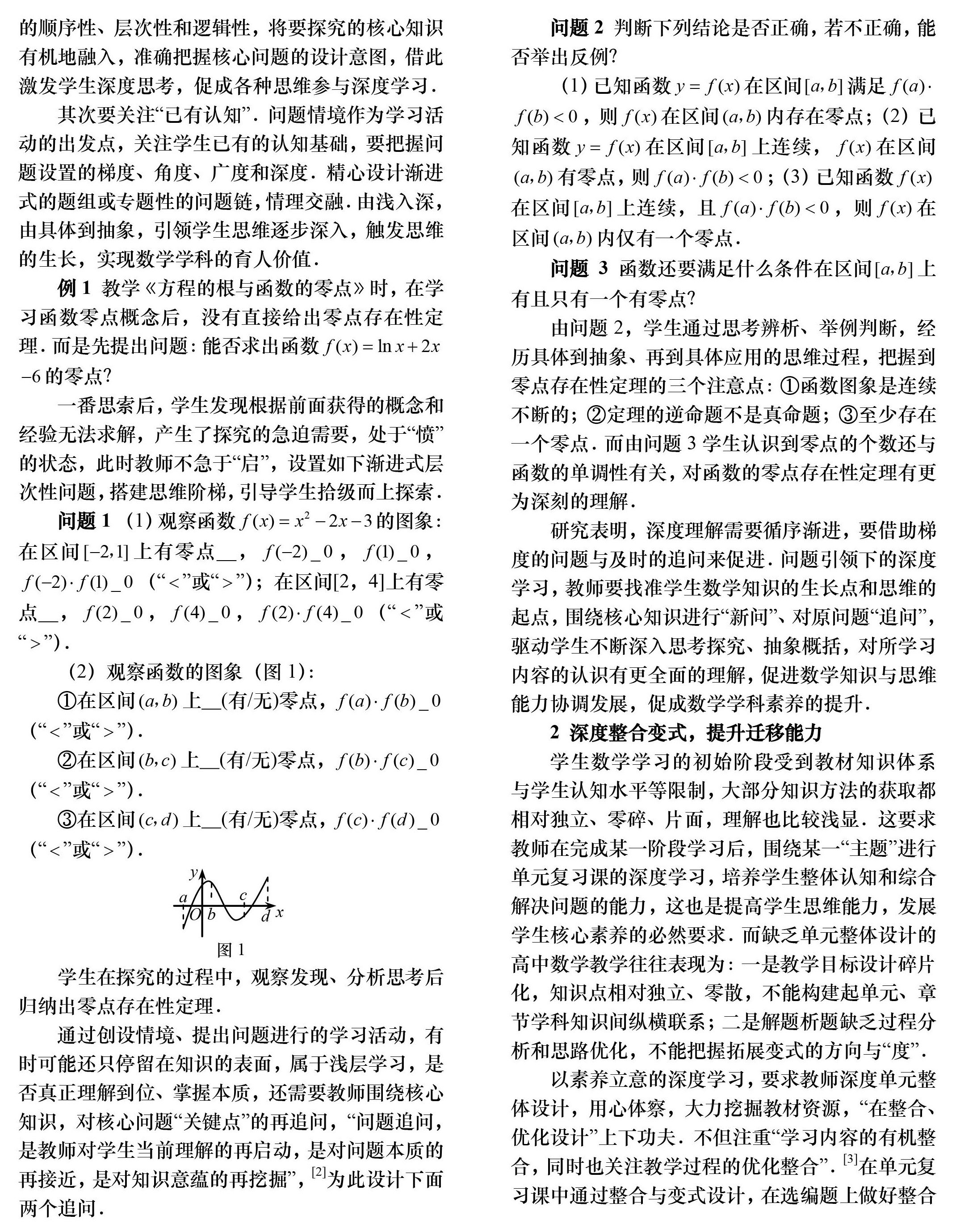 问题是学生学习的起点,可以说在操作层面上,数学教学本质就是问题教学.若教师没有“问题意识”,则整个教学过程就变成了“知识传递”,若没有高质量问题的驱动、有效的课堂对话,数学的学习将停留在低层次的思维上,导致数学知识表层化、学生思维浅层化,直接降低了高中数学课堂教学的品质与深度,