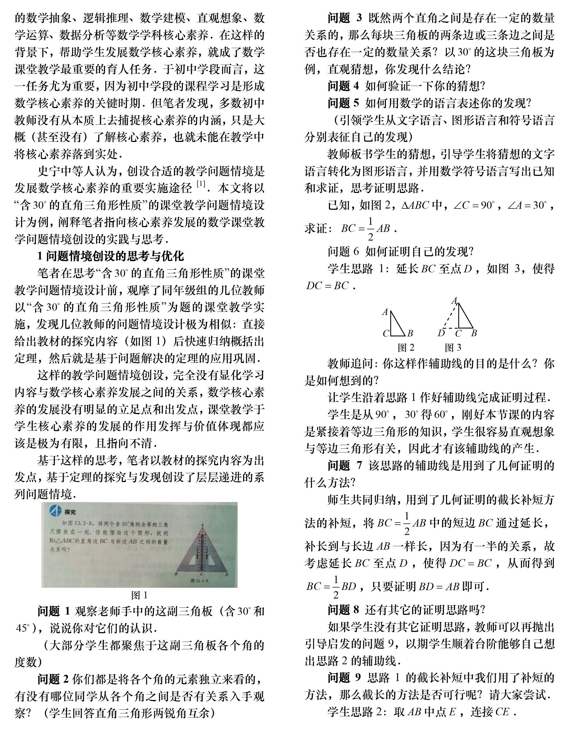浅析指向核心素养发展的数学课堂教学问题情境创设