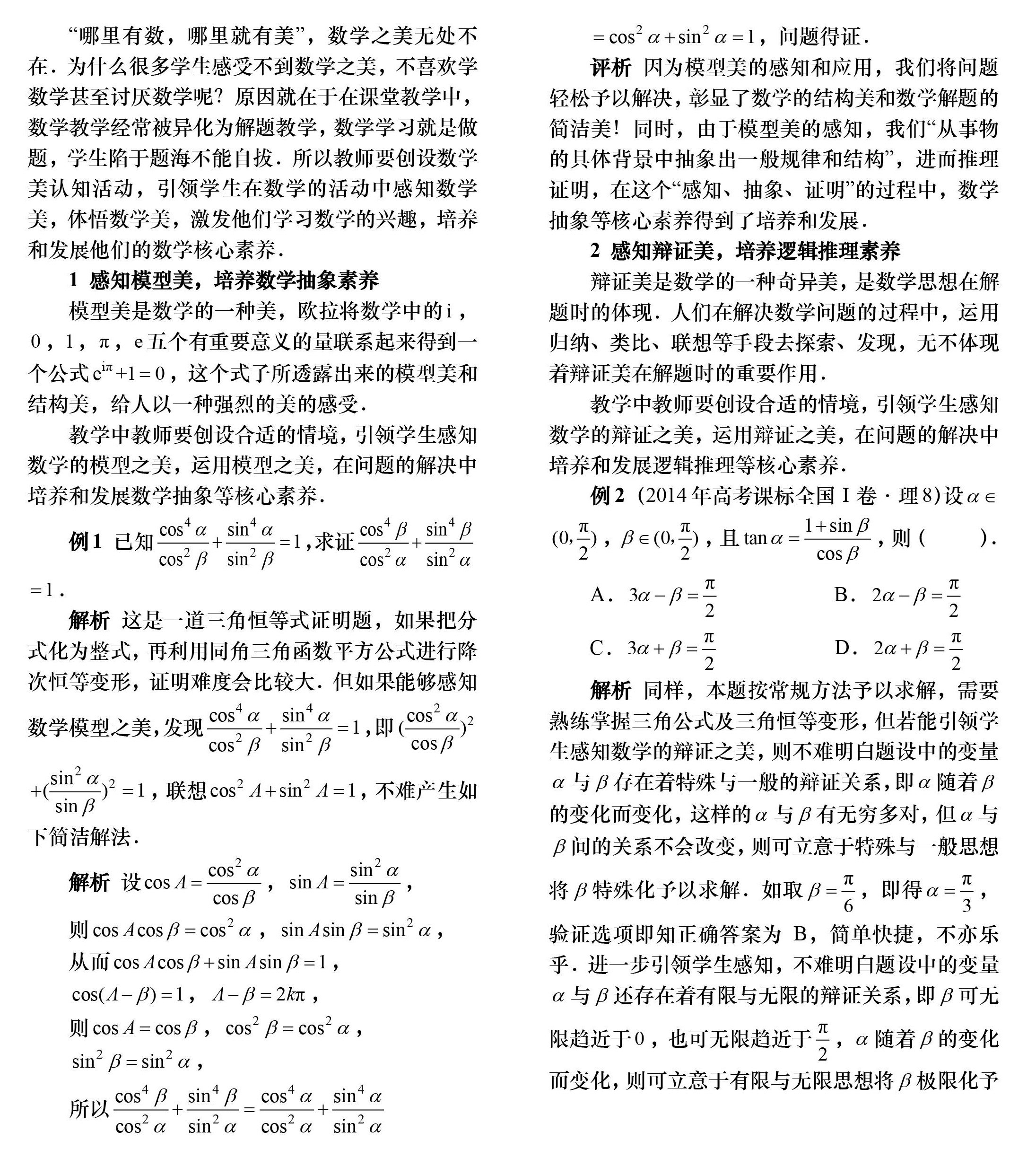 感知数学美培养数学核心素养