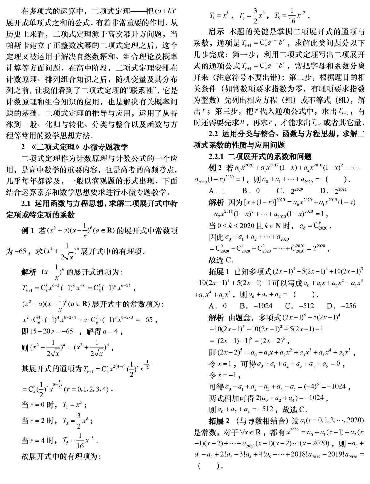 数学运算是《普通高中数学课程标准(2017版)》提出的六个数学学科核心素养之一.在高中数学课程的学习中,发展学生的数学运算能力能促进他们提升数学思维,形成规范化思考问题的品质,养成一丝不苟、严谨求实的科学精神.高中数学解题教学不仅要科学地渗透数学思想,让学生理解知识的形成与应(剩余44字)