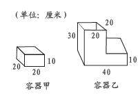周末的午后,小明和小华相约前往公园游玩。到公园不久,天色骤变,暴雨倾盆而下。他们躲进一处临时避雨处,看到花坛边摆放着两个储水容器:容器甲和容器乙。它们的形状和尺寸如右图所示。