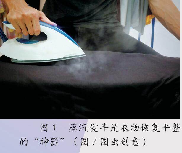 熨斗通过加热的方式使水汽化为水蒸气,当高温蒸汽作用于衣物时,不仅可以减少纤维中的氢键数量,还能使纤维更松弛。经熨烫后,纤维内部的高分子链段会在新的平衡位置形成新的氢键,并随着温度的降低不断稳固,使衣物恢复平整的状态。(剩余22字)