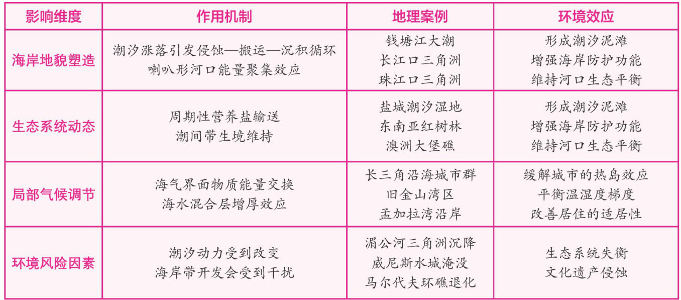 海洋潮汐现象看似平常,实则蕴含着丰富的地理原理。我们要想深入理解潮汐的成因及其影响,必须综合运用多方面的地理知识点。无论是天体引力作用、海岸形态,还是生态关联,都与潮汐现象密切相关。因此,潮汐作为高考地理的常考知识点,值得我们深入研究和系统掌握。
