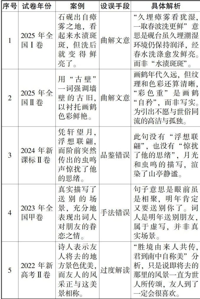 古诗词阅读测评的选材方向、内容主旨,都在随着“因文设题”的理念不断转变,从以往现象描绘、技巧赏析、主旨揣测等单纯考查知识性的试题,已然慢慢在转向注重文本理解、勾连迁移、证据阐释等的强调素养的考查。诗歌语言的省略性、跳跃性、含蓄性、意象化等特点,启示我们要在基于诗法的体验下去解构诗歌把握情思,进而在诗歌解析中寻找良方以应对高考诗歌测评。(剩余6009字)