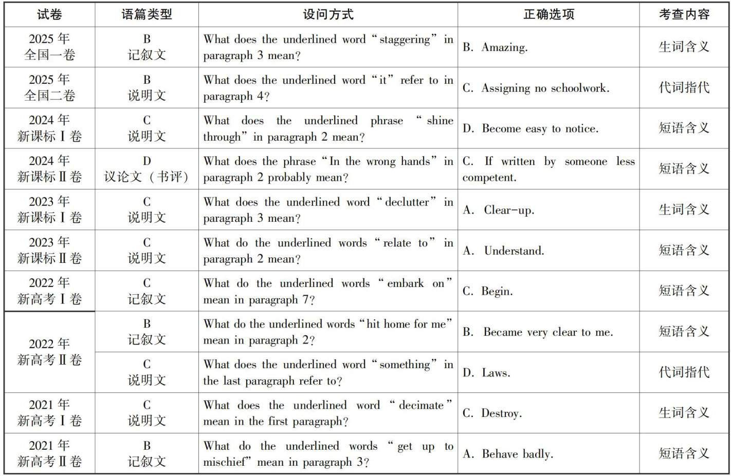 《普通高中英语课程标准(2017年版2020年修订)》明确要求:在语境中理解词语功能、词义内涵外延及作者态度。词义猜测题正呼应此要求,强调对上下文逻辑关联的精准把握而非孤立词汇解码。语境理论认为,语言的意义并非孤立存在,而是在特定语境中通过语篇、情境与文化等多维因素共同建构而成。理解词义,尤其是猜测生词含义,必须依托语篇连贯、语义关联和语用意图的综合分析。(剩余4352字)