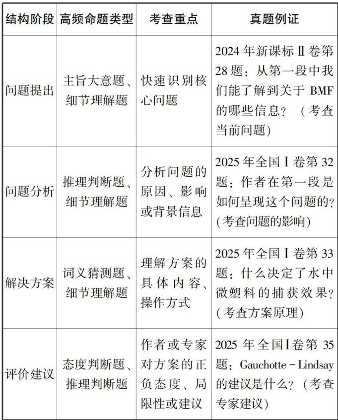 高中英语阅读理解中,问题解决类说明文(以C篇、D篇为主)因语篇结构严谨、逻辑层次清晰,成为考查学生语言解码能力与逻辑分析能力的核心题型。本文基于2024-2025年高考英语真题,分析问题解决类说明文的语篇结构特征,提炼“问题提出—成因分析一解决方案一评价建议”的四阶段阅读模型,揭示命题点与结构阶段的内在关联,提炼基于结构定位的解题技巧体系,为高中生应对此类阅读理解题提供实践指导。(剩余4552字)