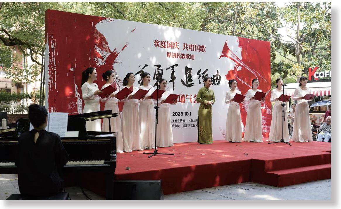 10月1 日,徐家汇公园百代小楼前五星红旗迎风飘扬,近百位市民挥舞着小红旗,共同唱响国歌,共庆新中国成立74 周年。这座名为“百代小楼”的红色建筑,正是电影《风云儿女》的主题曲《义勇军进行曲》的灌录地。当天上午,来自上海歌剧院原创民族歌剧《义勇军进行曲》的主创们,在这里为现场观众分享了这部原创民族歌剧的创作初心,演员们也演绎了剧中的精彩片段。(剩余1992字)