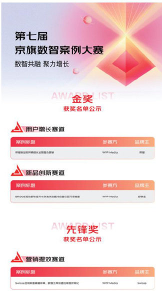 日前,第七届京旗数智案例大赛获奖名单正式揭晓。WPPMedia凭借在数智营销领域的卓越实践和显著成效,从众多参赛案例中脱颖而出,一举斩获两项金奖及一项先锋奖,充分彰显了WPPMedia在整合京东平台先进数智工具、深化全域营销策略以及助力品牌实现突破性增长方面的强大实力与前瞻视野。
