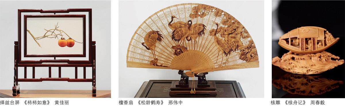 China's southern region has kept prosperous since ancienttimes, especially Suzhou, where scholars of successivedynasties gathered together. Wumen Painting School hadprofound impacts on Suzhou folk crafts. This exhibitionpresents more than 30 pieces (sets) of works, includingSuzhou Embroidery, kesi (a type of weaving done by thetapestry method in fine silks and gold thread), fruit pitcarving, jade carving, Suzhou-style furniture, Taohuawuwoodblock new year pictures, ceramics, Suzhou Fan andother categories.