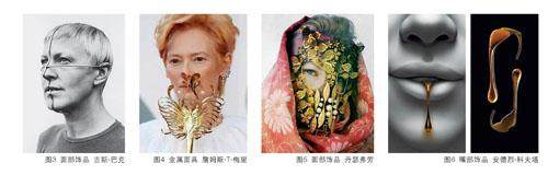 This article focuses on facial jewelry as a distinctive modeof decorative art, analyzing its innovative manifestation,cultural connotation, artistic value and developmentaltrajectory within the contemporary context. By examiningfeatures in material usage, design style and creationidea, this article reveals the approach for modern facialjewelry to transcend limitations of conventional jewelryand become a medium for personal expression, identityexploration and social issues. Furthermore, throughillustrative examples of facial adornment, this articleexpounds on development evolution of facial jewelry andits potential impact on the future fashion and art realm.
