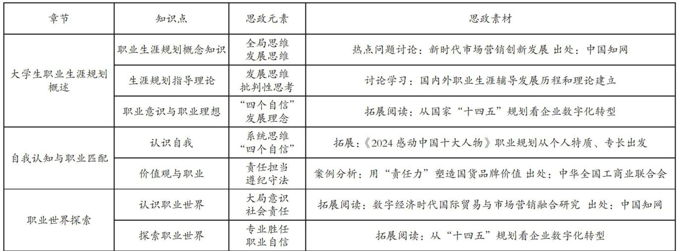 职业生涯规划课,可以从学生兴趣点出发,引导学生了解国家大事、社会发展,培养爱国情怀;职业生涯规划课程也是引导学生了解社会形势,建立社会思维的重要渠道,高职院校更侧重培养学生的实操能力、实务工作能力,专业学习更要贴近社会需要、时代发展需要,职业生涯规划课程立足专业,引导学生了解社会发展、紧跟时代趋势;职业生涯规划课程要注重思政体系建设,建立一套目标明确、内容充实、评价合理的课程体系是职业规划课程建设的迫切要求。(剩余4295字)