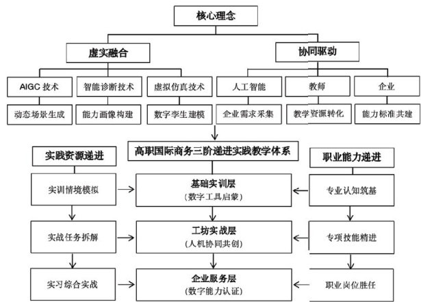 数字经济浪潮下,人工智能正深度重构全球贸易业态与人才需求结构,迫切要求高职国际商务人才提升“数智化 + 实战化”能力。响应职业教育数字化转型的政策要求,本研究聚焦人工智能技术的应用潜能,旨在提出一套适配国际商务专业特性的进阶式实践教学体系,为重塑数智化外贸人才培养路径提供理论参照与实践方案。