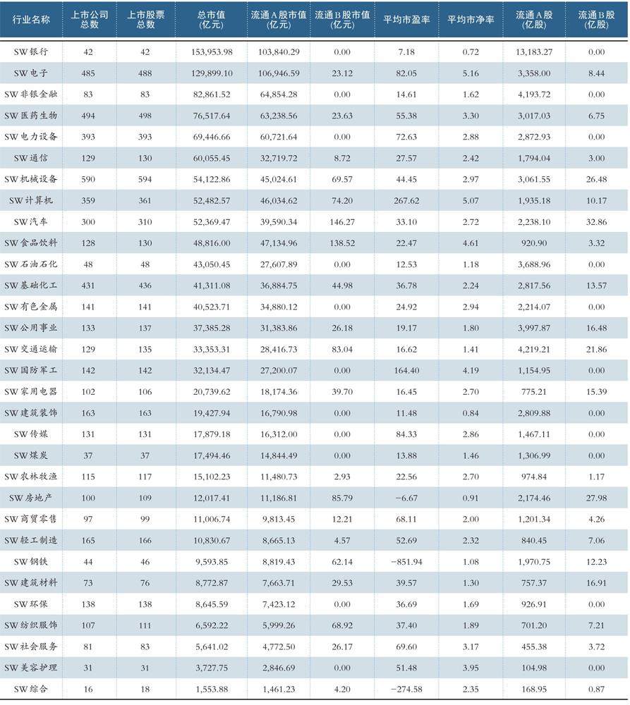 2025年8月底申万一级行业(2021)规模