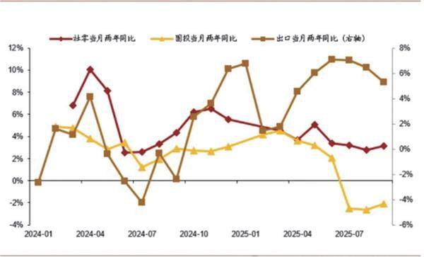 9月规模以上工业增加值同比增长6.5%,全国固定资产投资累计同比增长-0.5%。消费方面,9月份社零增速为3%。