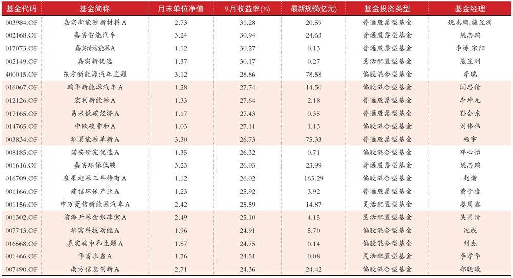 2025年9月主动权益类基金收益率前20(剩余18字)