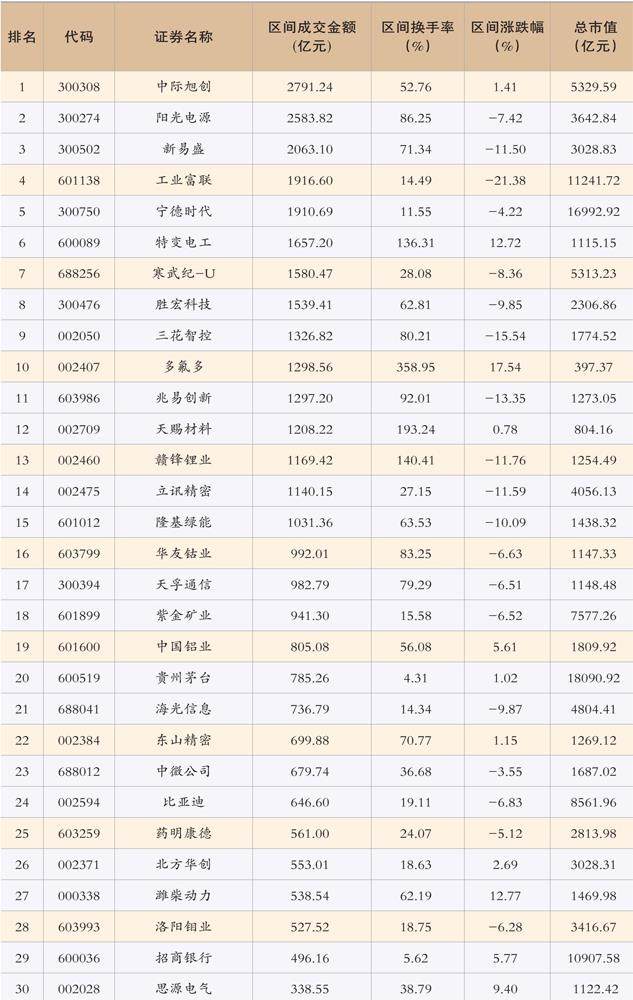 本统计期内(11月1日-11月25日),陆股通前30大活跃股包括中际旭创(300308)、阳光电源(300274)、新易盛(300502)、工业富联(601138)、宁德时代(300750)、特变电工(600089)、寒武纪-U(688256)、胜宏科技(300476)、三花智控(002050)、多氟多(002407)等。(剩余1490字)