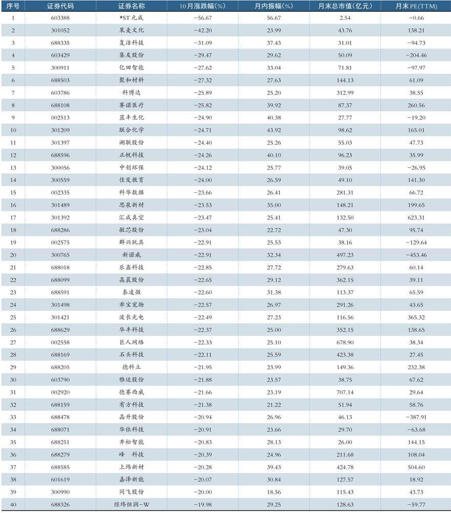2025年10月A股跌幅前40只股票(剔除年内新股)