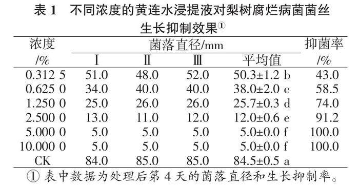 中药材黄连水浸提液对梨树腐烂病的室内防效评价