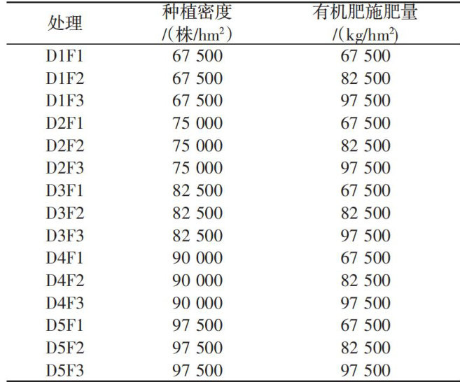 关键词:玉米;种植密度;有机肥;产量;经济效益