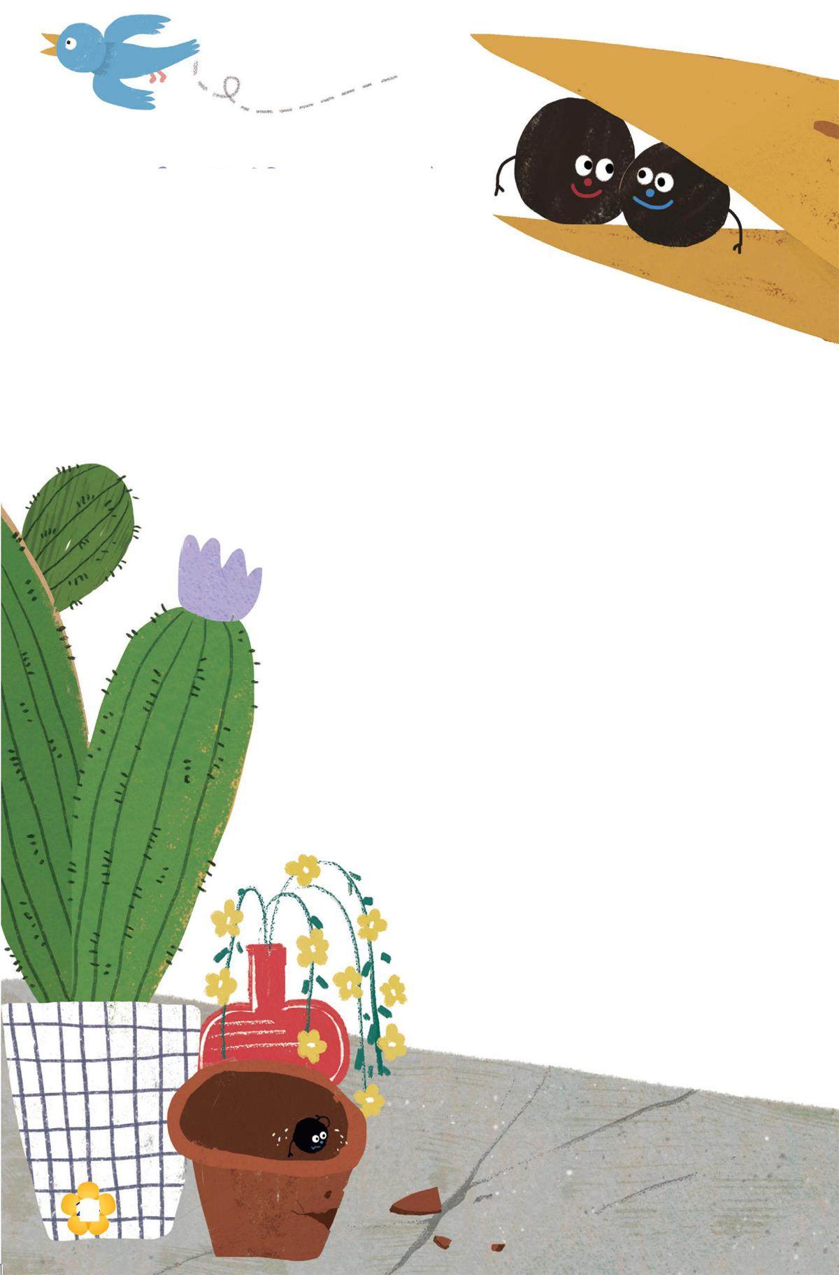 小鸟飞累了,降落到路边一个废弃的花盆里。它张开嘴,“啾啾、啾啾”叫了两声,两粒种子就蹦了出来。