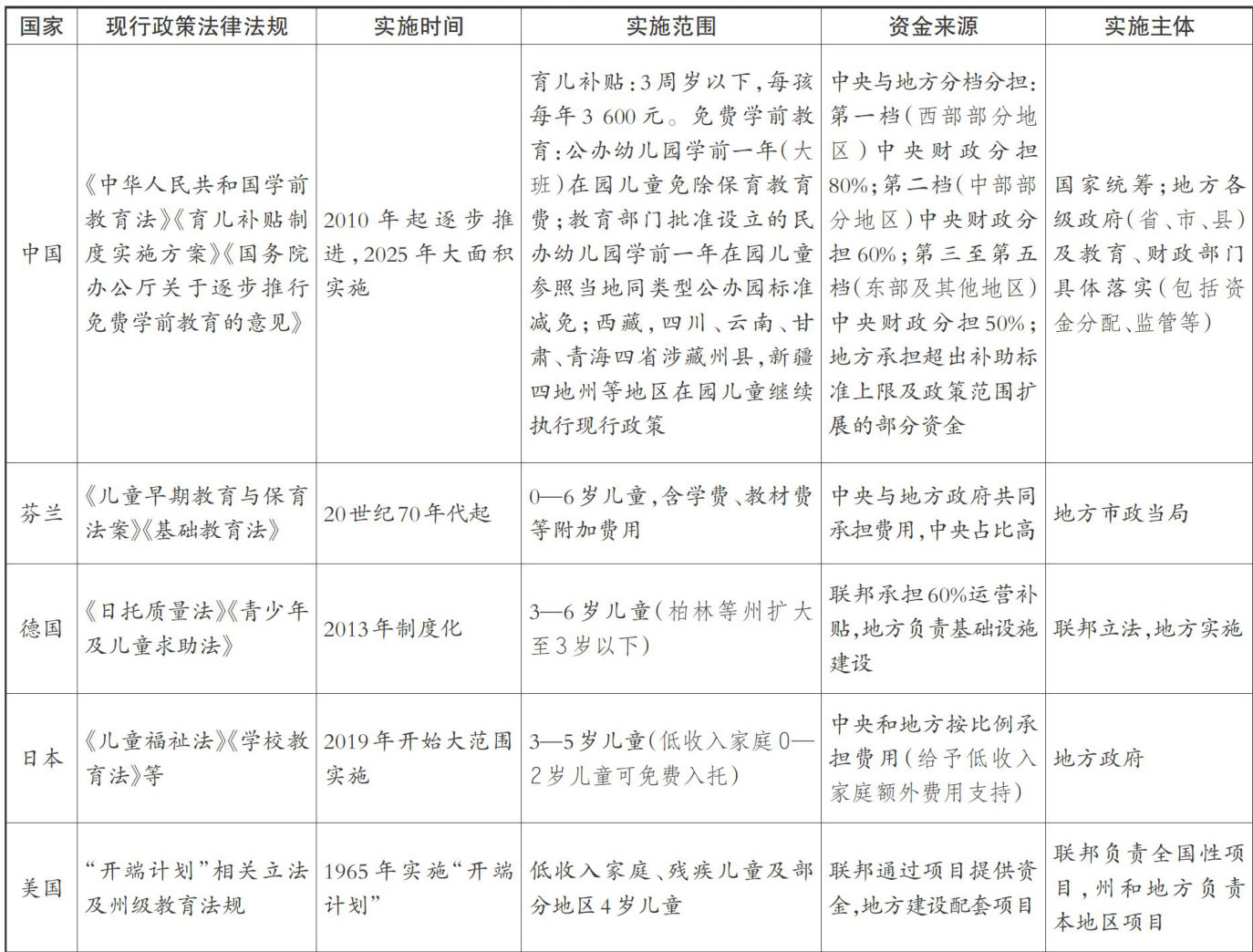 中外免费学前教育政策的比较与思考