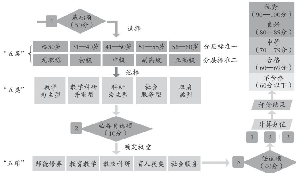 高职教育承担着培养高素质技术技能人才的使命。但是,目前高职院校的教师评价体系存在显著的结构性问题。一方面,评价过于侧重教学工作量和科研成果等可量化的指标,导致教学工作量和科研成果等显性指标占据了过高的权重,而那些能够体现职业教育特色的实践类指标,如企业实践和社会服务等,其权重却显得不足,这导致难以全面反映“双师型”教师的职业贡献,也无法全面反映教师的职业发展状况1。(剩余7804字)
