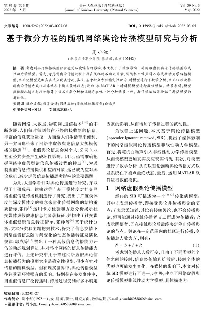 基于微分方程的随机网络舆论传播模型研究与分析
