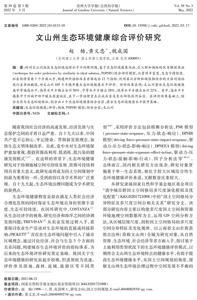 文山州生态环境健康综合评价研究