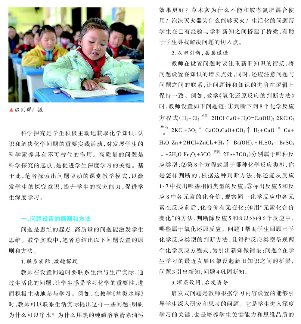 科学探究是学生积极主动地获取化学知识,认识和解决化学问题的重要实践活动,对发展学生的科学素养具有不可替代的作用。高质量的问题是科学探究的起点,是促进学生深度学习的关键。基于此,笔者探索出问题驱动的课堂教学模式,以激发学生的探究意识,提升学生的探究能力,促进学生深度学习。