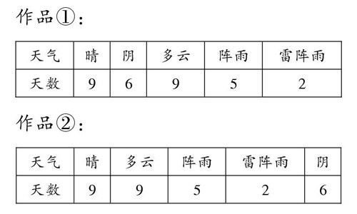 笔者先出示北京2012年8月的天气情况日历图(两秒后将日历图隐藏起来),随后提出问题:如果想知道这个月每种天气各有多少天,可以怎么办?学生回答:从日历图上分别数出每种天气的天数,再记录下来。(剩余2073字)