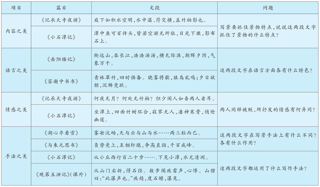 以九年级复习课“山水文言文美点及考点探索”为例。课堂上,教师从内容之美、语言之美、情感之美、手法之美四方面入手,设计了5个主问题,引导学生展开探究。(剩余2054字)