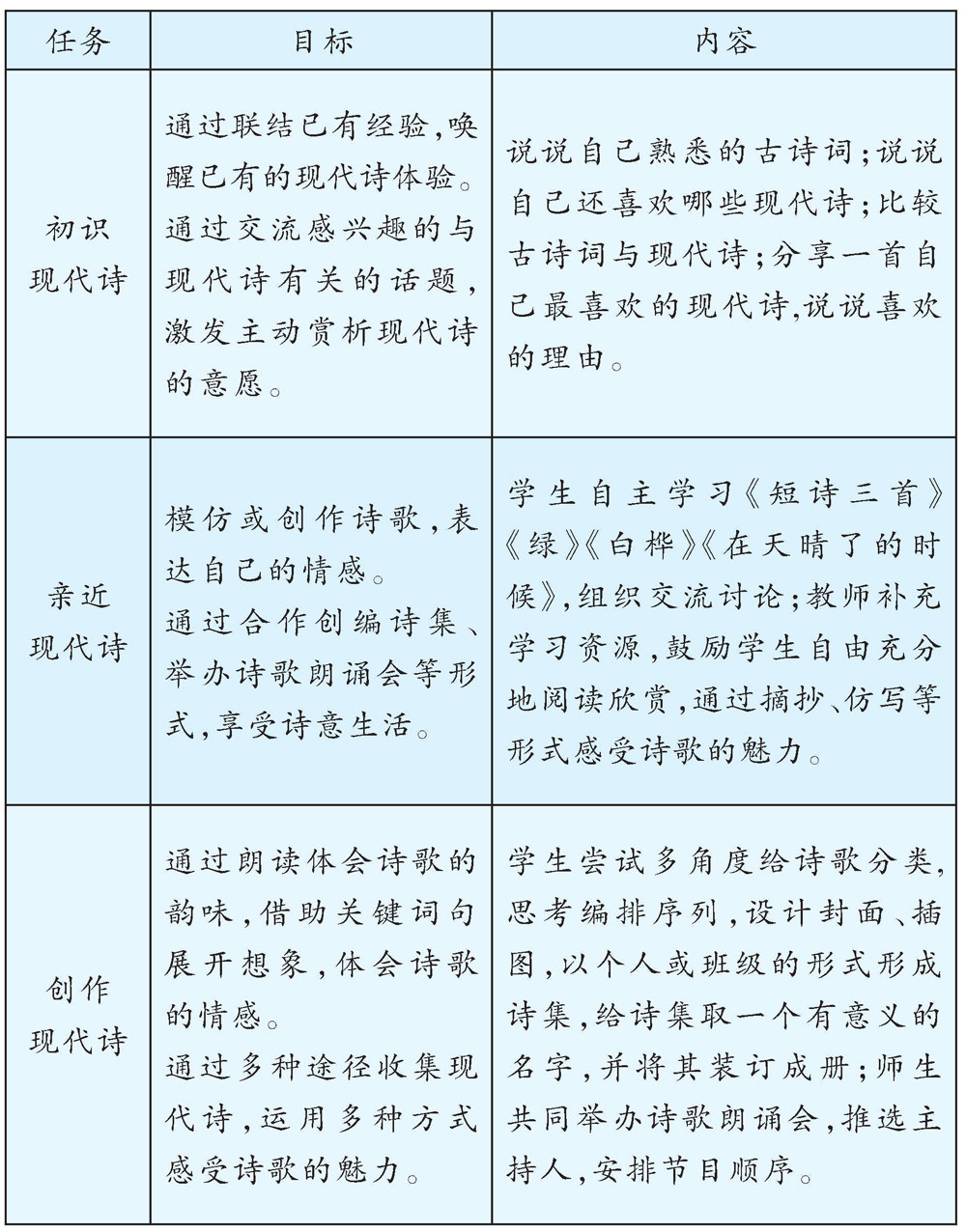 单元整组作业设计要以语文要素为核心,在梳理教材能力训练点、联系课内外资源的基础上,进行整体设计。统编版语文四年级下册第三单元的语文要素是“初步了解现代诗的一些特点;想象画面,体会诗歌的情感;根据需要收集一些资料,初步学习整理资料的方法”。笔者以本单元整组作业设计为例,谈基于基础型、发展型、拓展型三类学习任务群的作业设计策略。(剩余3244字)