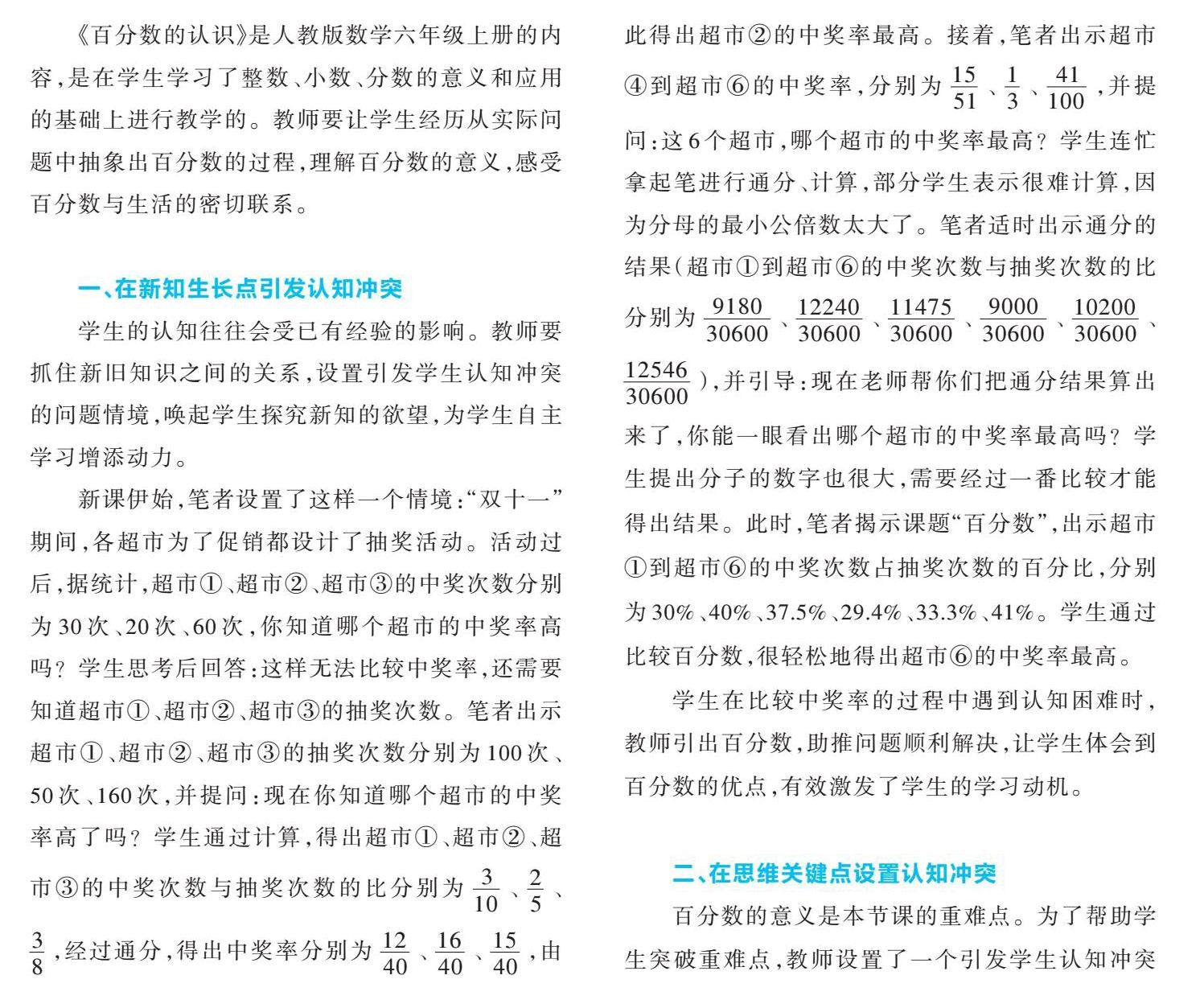 数学课程标准对“百分数”提出相关学业要求:“在真实情境中理解百分数的统计意义,解决与百分数有关的简单问题”,“在认识及应用百分数的过程中,形成数据意识,发展应用意识”。如何引导学生掌握百分数与分数、小数的互相改写以及“求一个数是另一个数的百分之几”的简单问题,理解具体情境中“增加(减少)百分之几”的意义,解决与百分数相关的税率、折扣、利率等问题?本期,我们讨论百分数及相关应用问题的教学。(剩余326字)