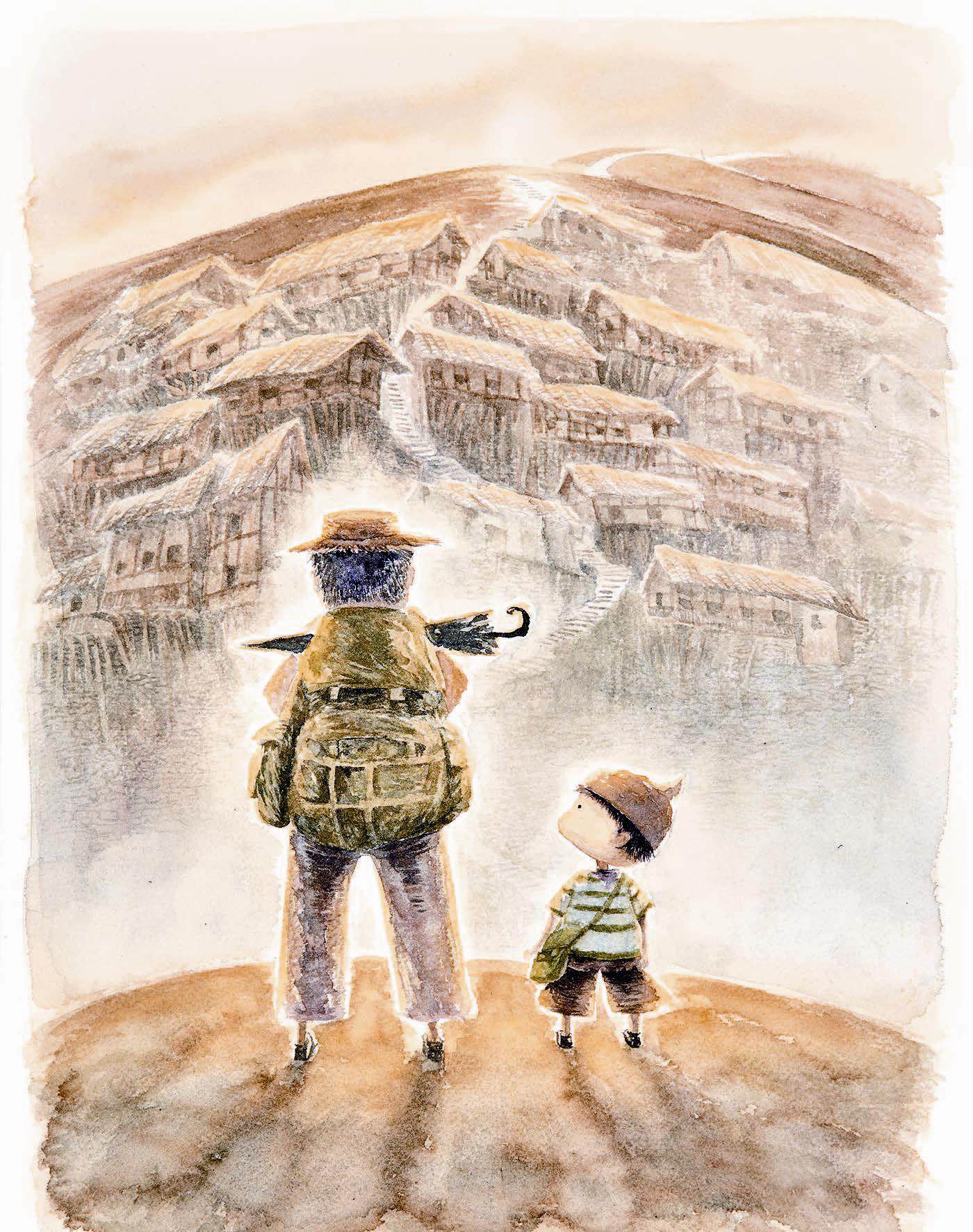 父亲总是奔波在外,他为了这个家的生计,要走很长很远的路。我知道,他也会陪伴我走一段路,会为我指引正确的方向,带我看沿路的风景。但总有一天,我会长大,要走上自己的路,而父亲也会像从前我在村口等待他那样,等待我归家。