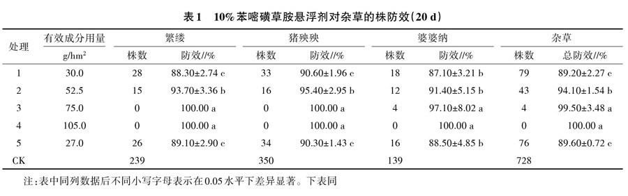 10%苯嘧磺草胺悬浮剂防除冬小麦田阔叶杂草药效及安全性评价