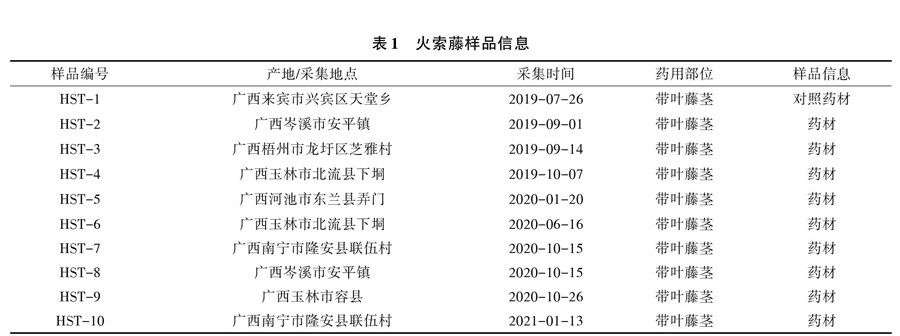 基于多种分析模式建立壮药材火索藤的HPLC指纹图谱