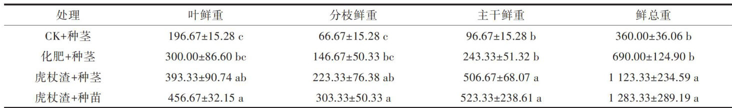 化肥与虎杖渣对27月龄虎杖生长发育的影响对比