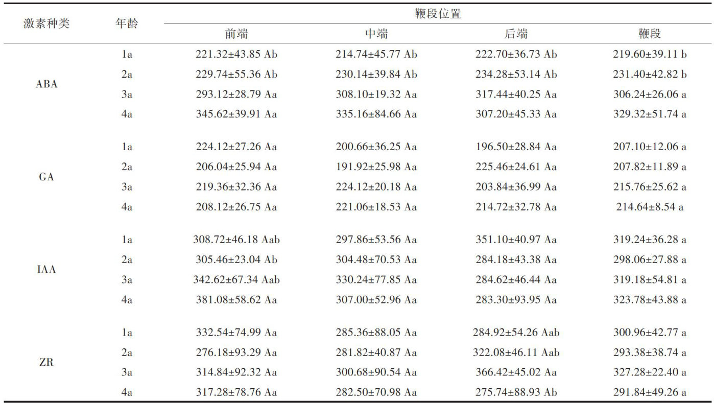 金佛山方竹竹鞭中内源激素水平和抗氧化酶活性的鞭龄效应