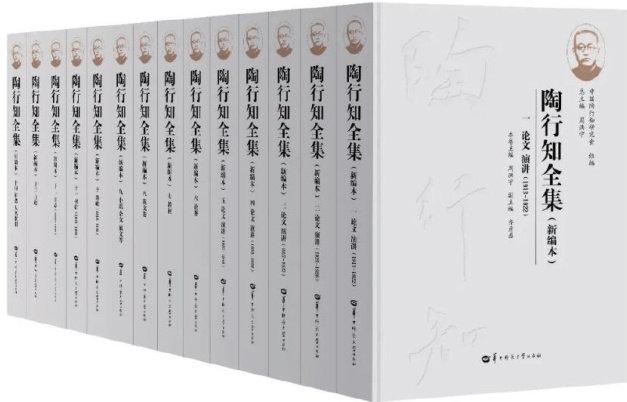 于陶行知先生130周年诞辰和逝世75周年之际,华中师范大学出版社隆重推出了《陶行知全集(新编本)》。该全集在全国政协副主席、中国陶行知研究会会长朱永新的指导与支持下,由该会原常务副会长、现任学术委员会主任、华中师范大学陶行知国际研究中心主任周洪宇教授领衔,联合多所高校专家学者共同编纂而成。