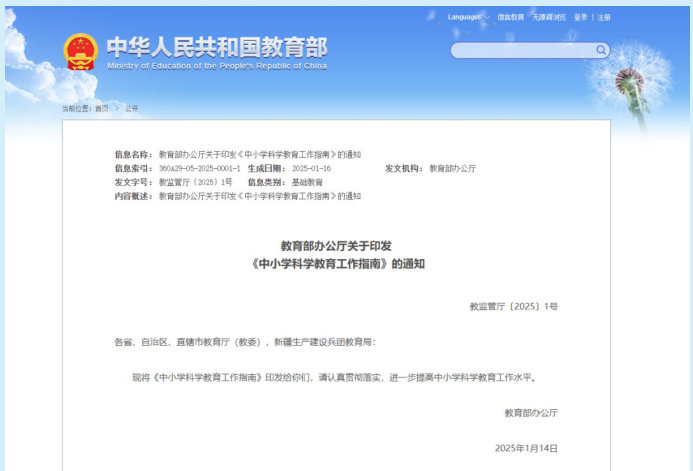 近日,教育部办公厅印发《中小学科学教育工作指南》(以下简称《指南》)。《指南》聚焦不断完善科学类课程体系建设,改进和创新教学体系,加强师资队伍建设,保障教学实施条件,整合校内外各类实践场所和资源,推动“大中小纵向衔接”“校家社横向联动”等中小学科学教育重点工作。(剩余2244字)