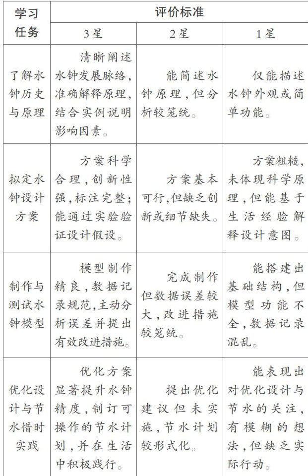 项目化学习作为一种以现实问题为驱动的教学,通过创设真实情境引导学生主动探究,促使其在解决问题的过程中自主构建知识体系,实现对其核心素养的培养。在《计量时间》一课教学中,我们设计了“用水计量时间”跨学科项目学习,引导学生在“做中学”的实践中实现深度学习。