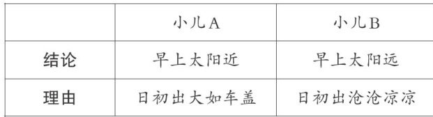 一儿日:“我以日始出时去人近,而日中时远也。”