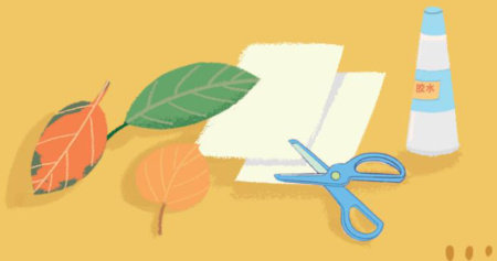 材料:落叶、安全剪刀、白纸、固体胶水。