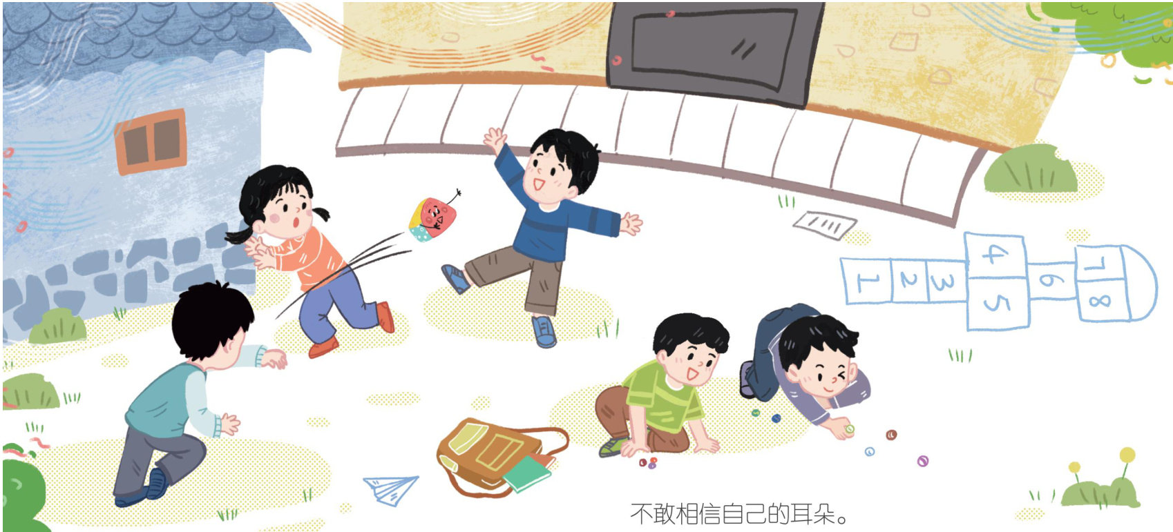 别想了,放假他们也不会来和我们玩的。现在的孩子什么没见过呀?手机和电脑里的游戏多好玩呀,谁还稀罕玩我们这些老古董游戏呢?”倚着石柱的“弹玻璃珠”精灵泼出一盆冷水,一下子浇灭了游戏精灵们的幻想