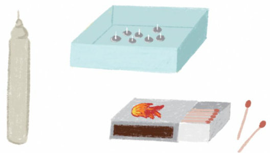 空空的房间里有一支蜡烛,一盒图钉,一盒火柴。请问,如何将蜡烛固定在墙上呢?