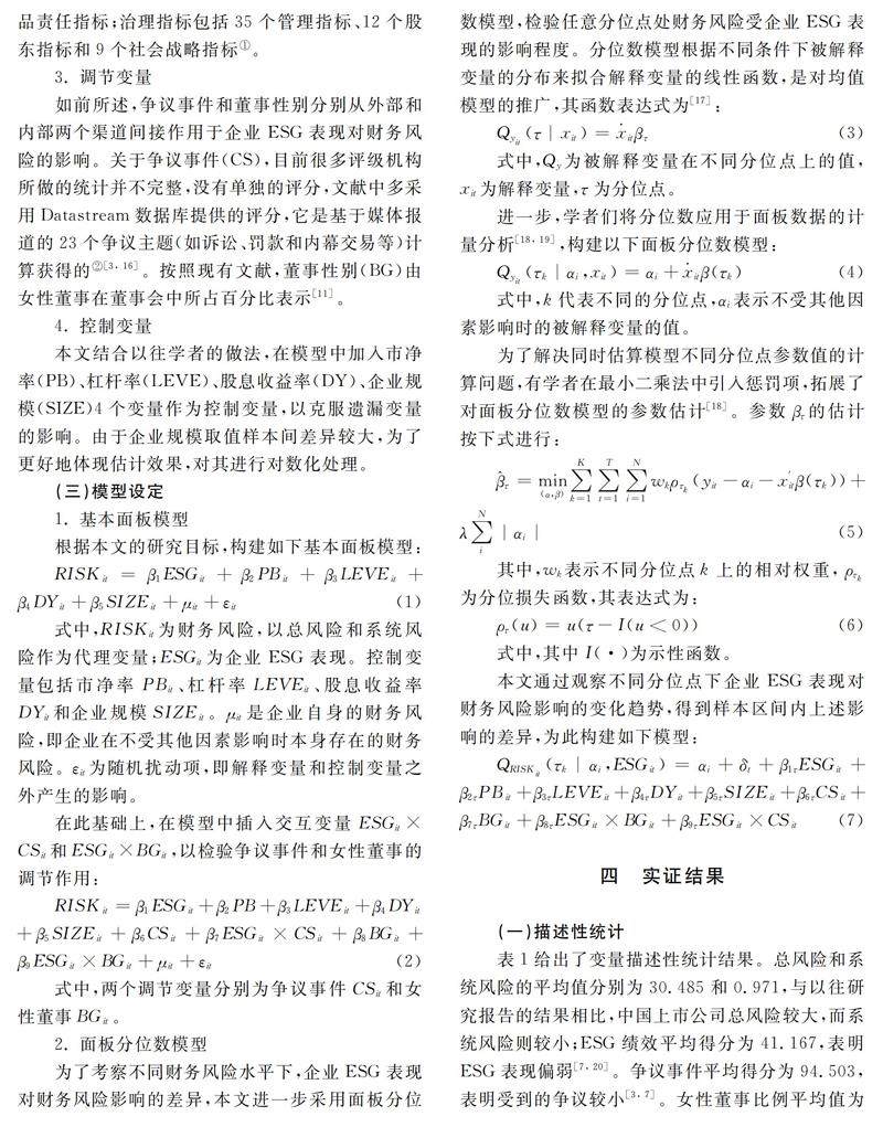 [摘要] 以中国A股上市公司及其2010年至2021年数据为研究对象及样本,采用基本面板模型和面板分位数模型检验企业环境、社会和治理(ESG)表现对其财务风险的影响。实证结果表明:一方面,企业改善ESG表现确实可以降低财务风险,且这种影响随其自身的财务风险水平增加而减弱,但对财务风险水平极高的企业而言该影响并不明显。(剩余14611字)