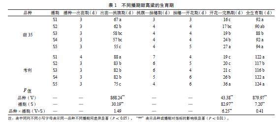 不同播期对桂中地区甜高粱产量和糖锤度的影响